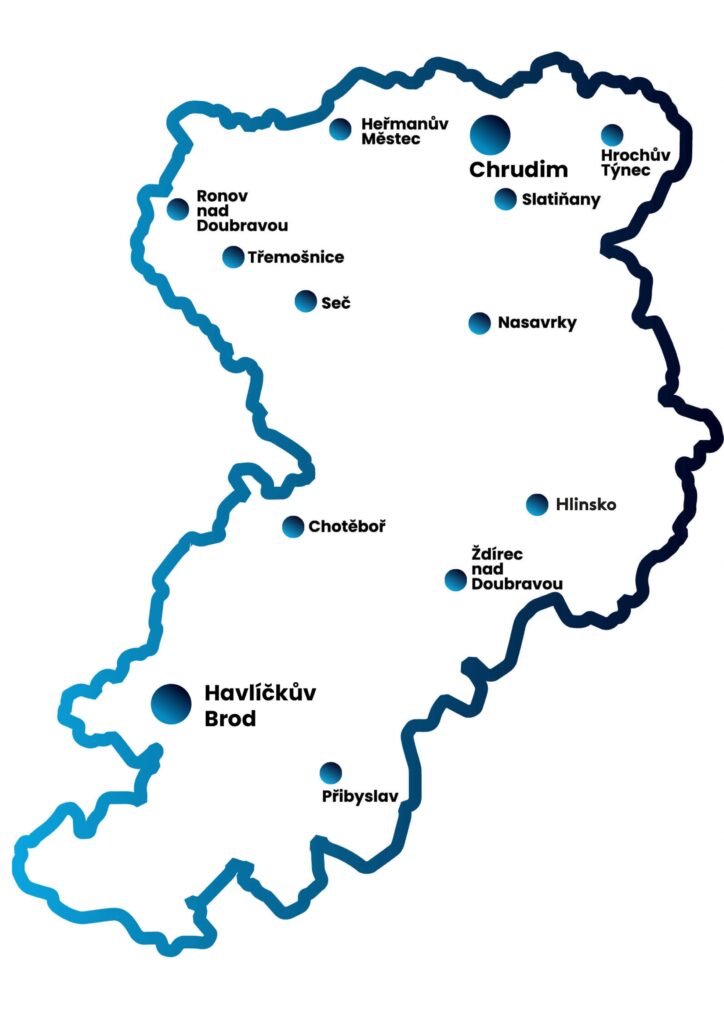 Počet měst: 12 – Havlíčkův Brod, Heřmanův Městec, Hrochův Týnec, Chotěboř, Chrudim, Nasavrky, Přibyslav, Ronov nad Doubravou, Seč, Slatiňany, Třemošnice, Ždírec nad Doubravou